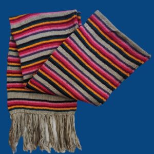 BUFANDA, CHALINA, TEJIDA A MANO CON 100 % LANA DE ALPACA, CÁLIDA Y CONFORTABLE, MULTICOLOR.